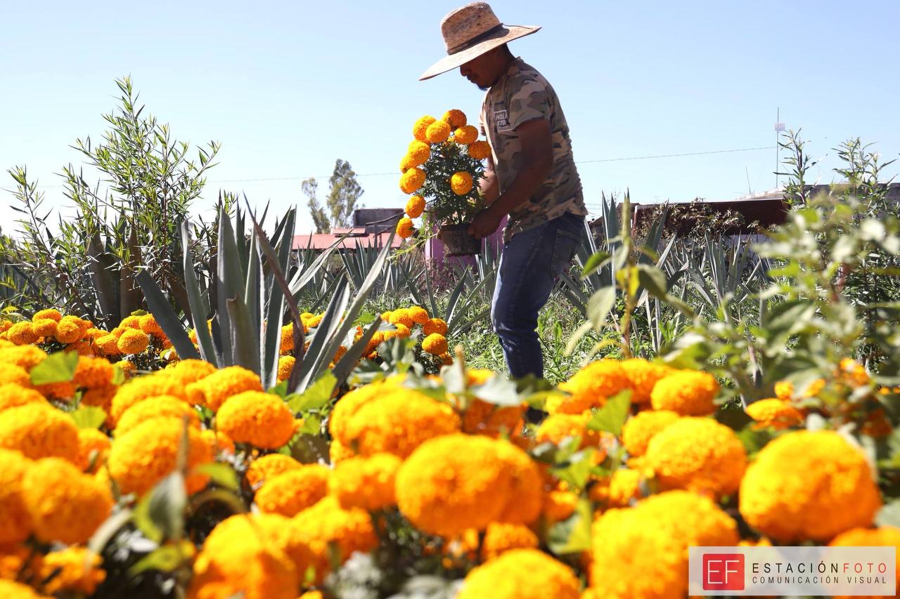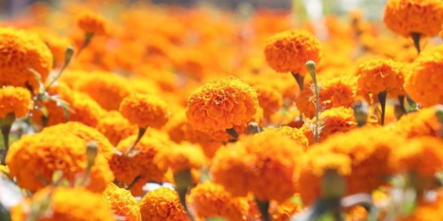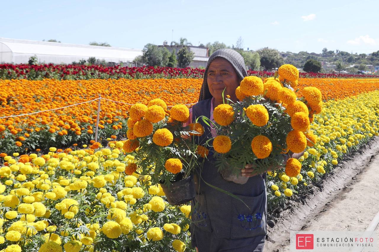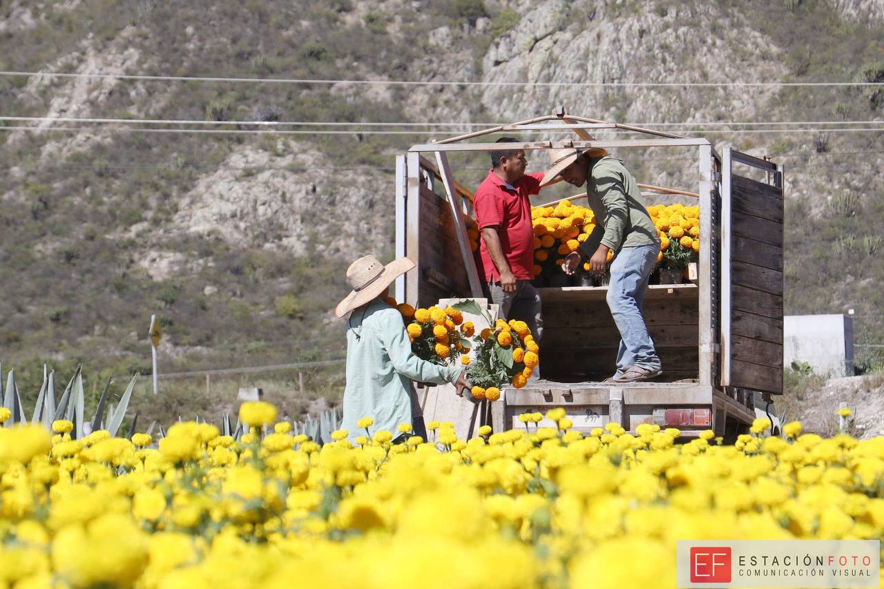 Los tonos anaranjados, rojos y amarillos de las flores de cempasúchitl o cresta de gallo, revisten los campos de Oaxaca, previo a la cosecha para vender en diversos puntos de la capital y adornar tumbas y altares en las celebraciones por el Día de Muertos en Oaxaca.